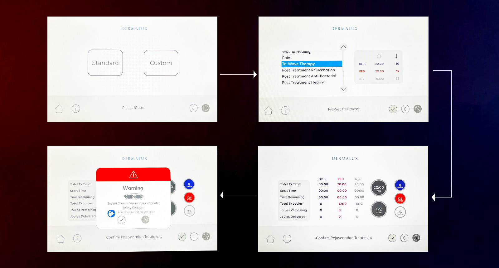Với các dòng máy cao cấp như Tri-Wave MD và Compact Lite, chuyên gia còn có thể tùy chỉnh sâu hơn về năng lượng, tần số, thời gian… để “may đo” phác đồ chính xác cho từng tình trạng da.